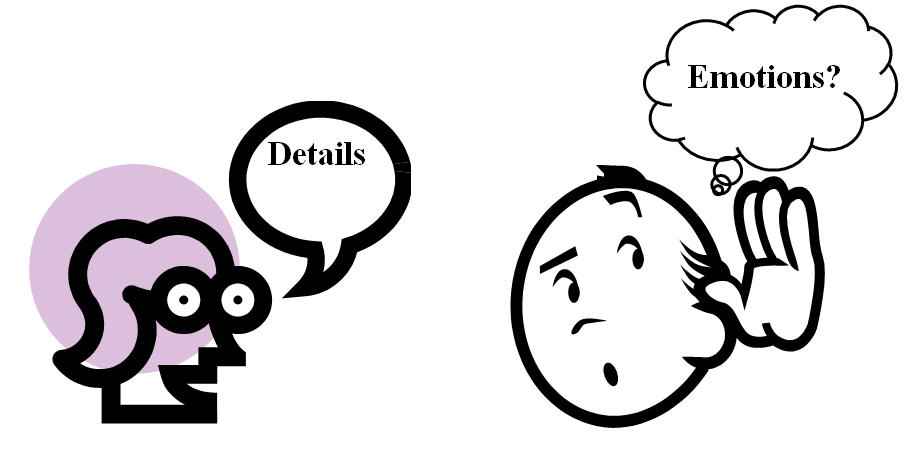 Let’s say the woman on the left is a supervisor who is explaining a new company policy to the person on the right who is an employee. The supervisor is very carefully explaining the details of the new policy—when the change will go into effect, the specifics of the change and what the employee needs to do to adhere to the policy. It’s her job as a supervisor to communicate these details; therefore she believes she’s delivering a treasure-trove of information.