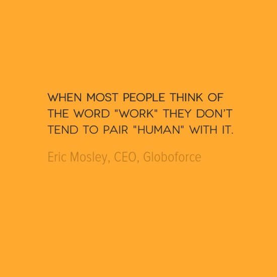 How sad is that? But it’s true, especially when you consider the modern office’s use of technology. Technology does everything from scheduling bathroom breaks in a call center to monitoring employee performance reviews. And when technology is used to cull large amounts of data, poorly applied analytics dehumanize the work experience. That’s why it’s refreshing to hear a tech company CEO talk about bringing humanity back to the workplace. Eric Mosley is CEO of Globoforce, an HR software company that specializes in recognition.