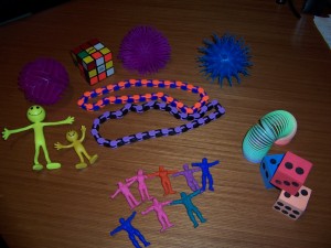 My faves are small containers of Play-Doh and also Bendaroos. Both are fun for participants, keep them busy, are colorful and don’t make a mess. I learned to use toys during graduate studies at Webster University. The course on adult learning principles was amazing. Great post!