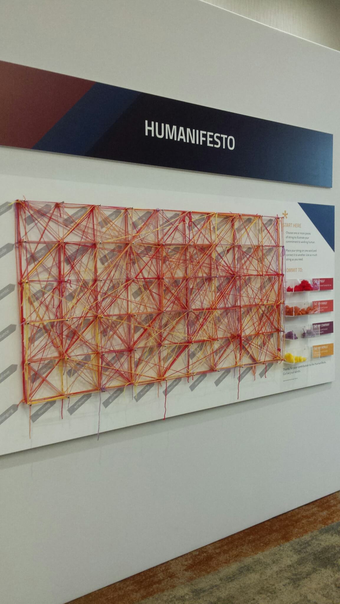 . . . and the Humanifesto wall, in which you can use different-colored string to illustrate your commitment to working human – for yourself, your family, your company or the world.